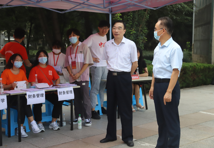 本网讯 金秋九月,硕果飘香,又是一年迎新季。9月8日,学校5000余名2021级本科生、研究生安全、有序、文明、快捷完成入学报到手续,在ku游官方开启新征程。校领导孙道胜、黄显怀、蔡新立、王玉兰、闵杰、张亚新、蔡国军等相继来到迎新现场,看望慰问报到新生、迎新工作人员和志愿者,有关职能部门负责人陪同。
