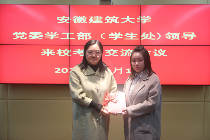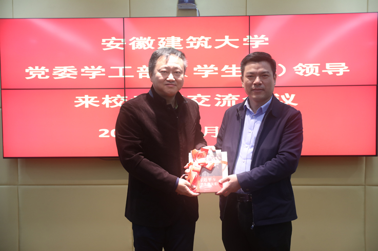 党委学工部(学生处)部长(处长)斯方龙对安徽职业技术学院的热情接待表示感谢,传达了学校党委行政对加强两校合作培养学生的重视和采取的具体做法,就学生管理、辅导员队伍建设、“三全育人”等工作内容做了交流,他从辅导员的职责定位、岗位要求和肩负使命对辅导员做好学生工作提出要求,要做到“心中有爱”“肩上有责”“脑中有弦”“胸中有数”“手中有招”“眼中有光”,方能在学生工作中无往不胜;希望双方加强交流、沟通,及时解决学生在学业、生活上的所需所盼,共同管理好、服务好学生,全力保障学生健康成长。