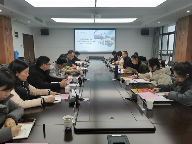 12月24日,安徽职业技术学院学生处副处长李瑞勇一行6人来我校考察交流学生工作。学工部、就业工作处和教务处相关负责人员参加交流会。