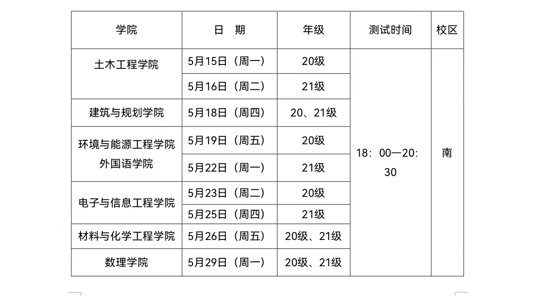 一、测试对象:全日制在校20、21级本科生(不含专升本)