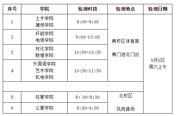 按上级疫情防控部门要求,学校为2022级新生开展核酸检测,为避免学生聚集排长队,请按规定时间段提前10分钟排队侯检,具体安排如下: