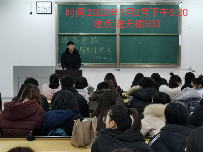 本网讯  营造以勤奋学习为荣、违纪作弊为耻的良好校风进一步严肃考风考纪,建立良好的考试秩序,研究生院2019级各班级在期末考试来临之际,组织召开诚信考试主题班会:传达学校考试纪律要求指导大家认真复习,做好考试准备加强诚信意识教育,塑造良好道德品质。同学们纷纷签署《学生诚信考试承诺书》,自觉为塑造我院诚信、文明、向上的学风考风而共同努力!(作者:何鹤立;审稿:万德军)