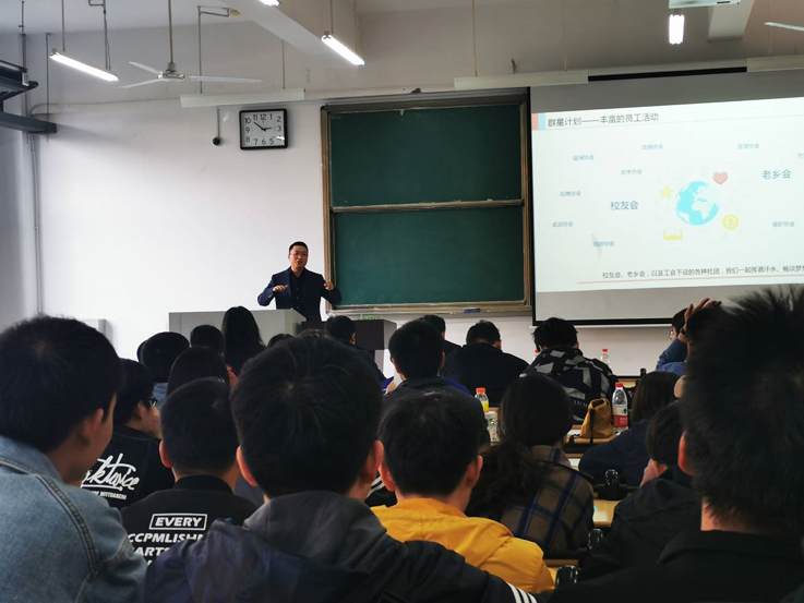 基准方中合肥分公司总经理豁国锋对基准方中集团进行了详细介绍,主要包括公司规模、企业文化、企业制度、薪资水平以及未来公司发展的愿景。在互动环节,现场学生踊跃提问,来自基准方中的专家为同学们一一进行了认真耐心的解答,整个宣讲会现场氛围融洽。(文/图:范晨晨 贾宇枝子;审稿:徐庚阳)