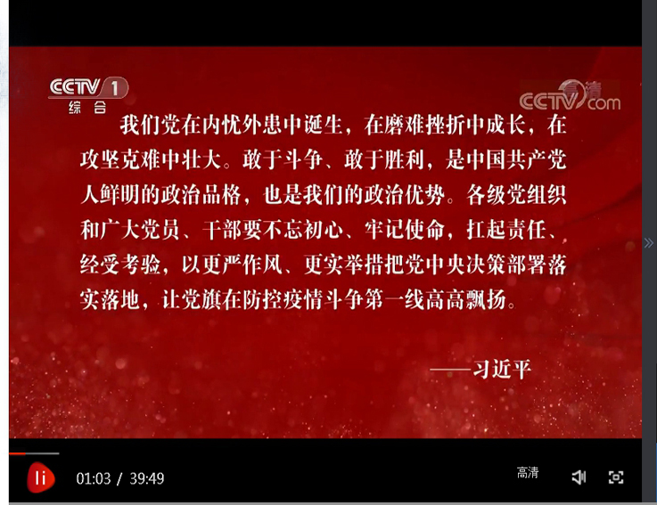 观看结束后,学院党委书记张红亚,紧密围绕习近平总书记关于疫情防控重要讲话和指示批示精神,围绕“让党旗在防控疫情斗争第一线高高飘扬”上了一次微党课。大家纷纷表示,要以榜样为引领,学习他们勇担使命的精神、保护生命的执着以及立足岗位的坚守;尽己所能,用实际行动巩固疫情防控成果,发扬实干精神,毫不懈怠做好各项工作。(文\图:孙长玥 程玉环;审稿:张红亚)
