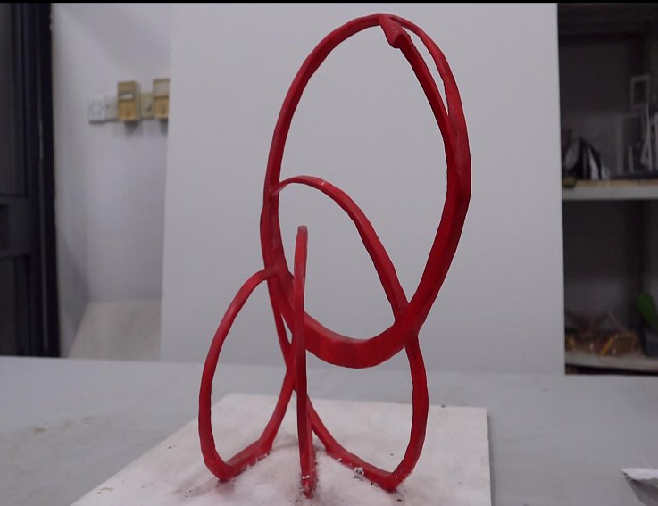 图中的雕塑作品整体以红色为主,与国旗的颜色相一致,代表爱国精神,热情洋溢;从各个角度看都是向上的态势,象征着祖国蒸蒸日上的发展。
