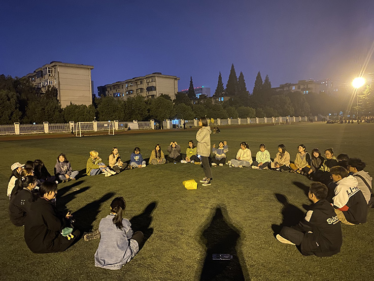 游戏结束后,获胜的小组喜笑颜开,失败的小组则进行“真心话大冒险”,同大家分享自己的成长经历、展示自己的技能特长。一时间,操场上充满欢声笑语,大家围坐在跑道上,在游戏活动中感受到了身边人的温度,拉近了心与心之间的距离。