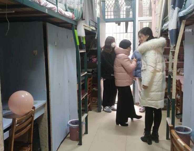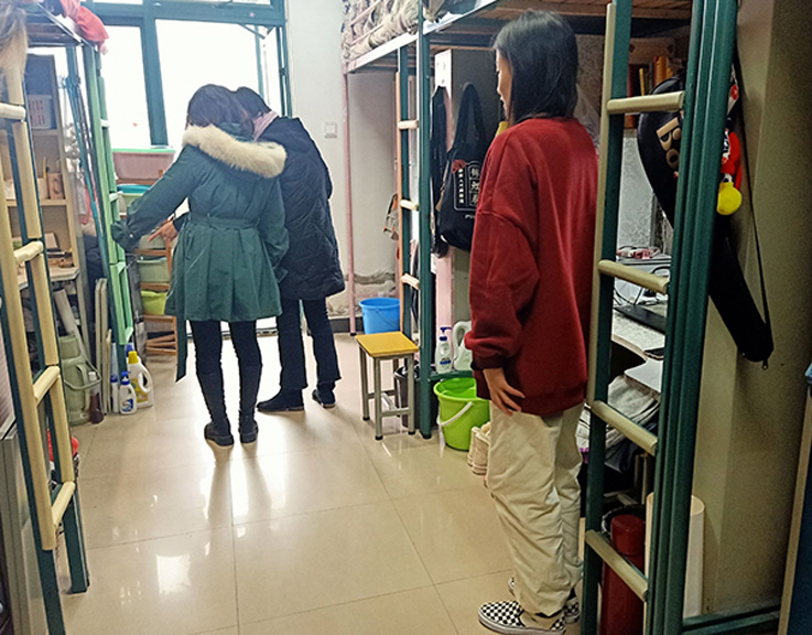 党委副书记潘青带领专兼职辅导员逐个楼层查看,关心了解同学们生活中遇到的困难并及时协调解决,同时重点查看宿舍有无使用违规电器现象,积极宣传卫生防疫及防骗防火等知识,提高大家的安全意识和防范意识。对安全和卫生优秀的宿舍给予表扬,对查出问题的宿舍和学生及时批评教育。宿舍安全及卫生检查为艺术学院的常规工作,也是切实将学生宿舍安全工作落到实处的一项有利措施。(作者:孙长玥 王嘉露 刘小玉;审稿:潘青)