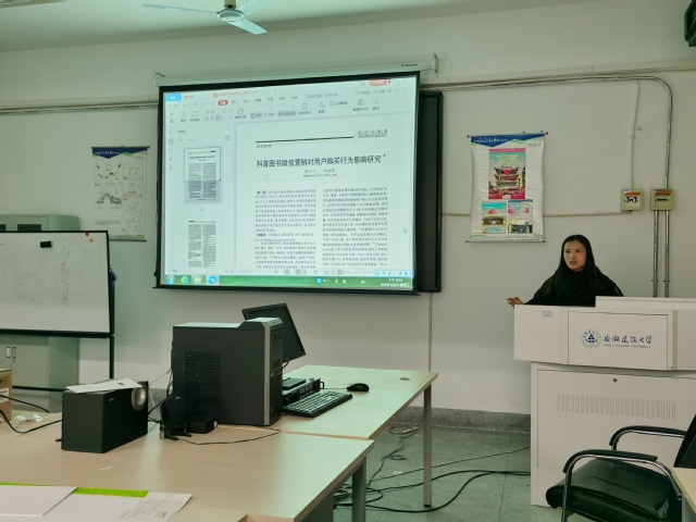 韩飞飞老师以《科普图书微信营销对用户购买行为影响研究》为例,讲解定性与定量的研究方法、如何通过模型得出数据、量表研究、信度与效度的检验,为学生带来精彩又具有实用性的学术分享。最后老师们也为大家下一次学术研讨活动指明了新的任务与方向。 (图/文:王艳;审核:邢瑜)