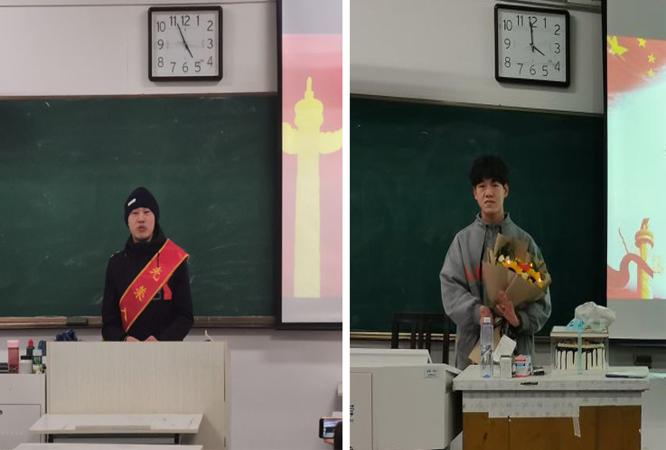 欢送会上,即将奔赴军营的两位同学抑制不住激动的心情,表达了对母校、对老师和同学的感谢和依依不舍。对于2017级毕业班来说,还有3个月即将毕业奔赴工作岗位,开启人生新的篇章。那时,范良源同学身在军营,无法和相处四年的兄弟姐妹们挥手告别,大家格外珍惜此次相聚的时刻,心中无比留念和不舍。2020级新生班级亦是如此,虽然相识半载,朝夕相处间感情早已深厚,同学们为乔龙帅同学送上了祝福贺卡,表达内心最真挚的情感。