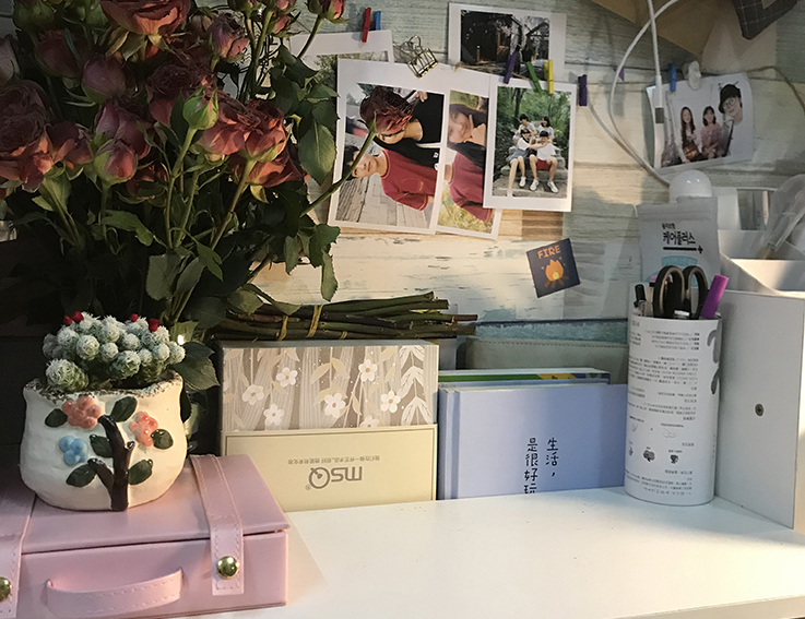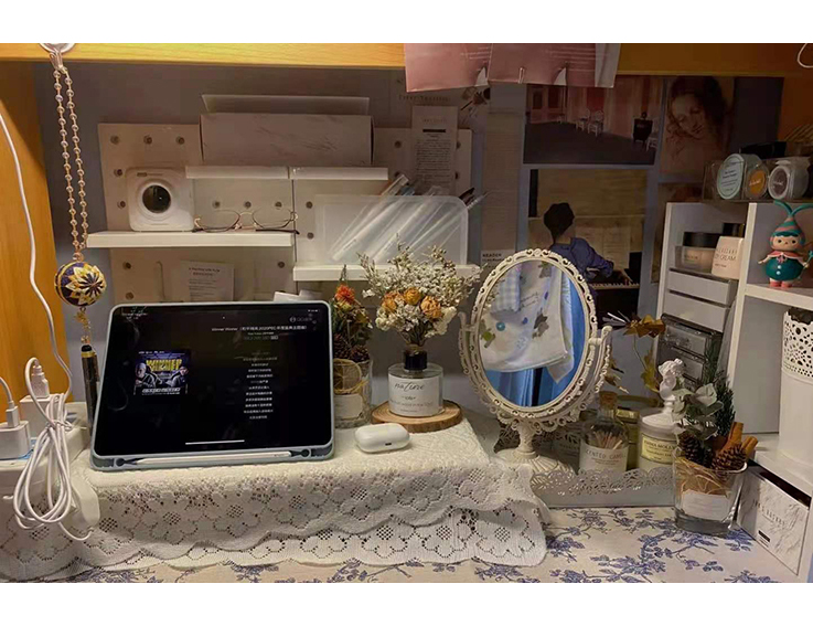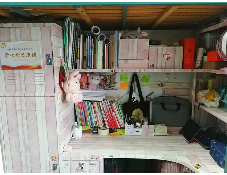 同学们积极行动,充分发挥个人聪明才智,争相“打扮”自己的书桌,用独特的色彩,创意的摆件丰富着自己的一方天地,展现着自己多姿多彩的生活,为创建文明温馨的宿舍贡献着自己的一份力量。学生党员更是发挥先锋模范作用,以身作则,带动周围同学积极参与。