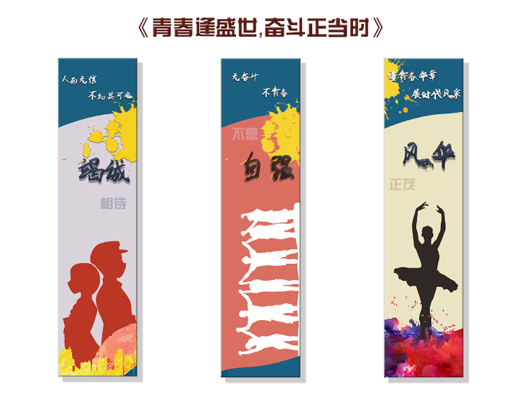18级环境设计专业万扬用竭诚相待、自强不息、风华正茂三组书签展现了当代青年的风采与百折不挠的毅力。