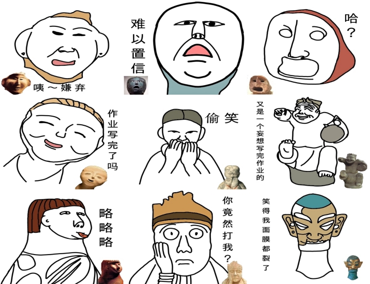19级公共艺术专业史思芬创作的表情包《假如文物会说话》,以“生活与情绪”为主题,将文物做成表情包,打破人们对文物的刻板印象,趣味十足。