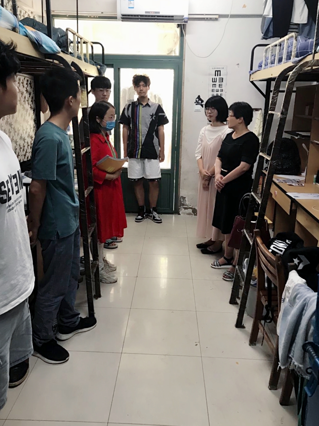 本网讯 为提高学生安全意识、加强宿舍安全管理,9月28日中午,艺术学院党委副书记潘青带领全体辅导员对学生宿舍开展安全检查工作,对宿舍安全用电、整洁程度等情况进行了检查,加强对违规使用大功率电器、不规范使用插座、垃圾不分类等行为的批评教育,检查学生是否张贴“防范电信网络诈骗”宣传海报,叮嘱学生“十一”假期按时完成晨午晚体温签到,做好自我安全防护。同时,老师们探望了19级刚复学的公共艺术专业的曹逸磊同学,关心询问生活上是否还存在不方便的情况,协助他办理各项申请。