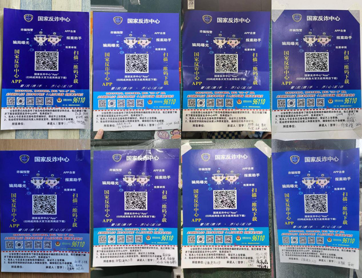 防诈骗宣传单页明晰了各种防范电信诈骗的常识、方法以及遭遇诈骗后寻求解决的正确方法以及有效途径,大力推广了防诈骗的“三不一多”原则:未知链接不点击、陌生来电不轻信、个人信息不暴露、转账汇款多核实。艺术学院的同学们认真学习并签名,在宿舍内张贴,提醒自己防范类似情况的发生。