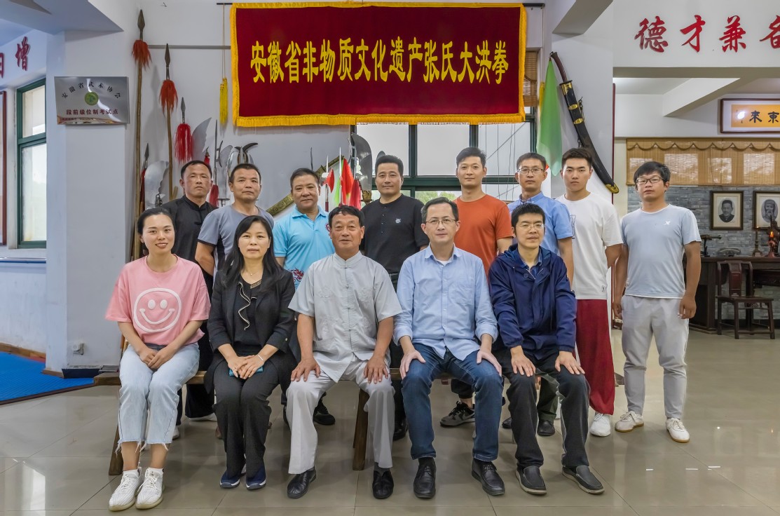 本网讯 日前,艺术学院副院长邢瑜、黄朝晖、体育教学部主任徐飞、非物质文化遗产保护传承团队陈治军博士、体育部教研室主任杜卫提、校武术队总教练李晓冉等一行实地调研安徽省非物质文化遗产张氏大洪拳传承基地。