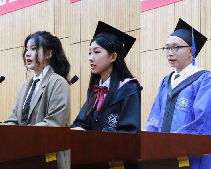 本科毕业生代表2018级环境设计专业万扬和2019级研究生毕业生代表黄志星向母校做深情告白,感谢母校和师长的培育与教导,感谢同窗挚友们的相帮相助,感谢这一段满载着青春与汗水的记忆赋予自己的奋斗力量,并向每一位老师和同学送上了真挚的祝福,愿彼此前程皆似锦,愿来日聚首俱欢欣。2020级环境设计黄艺雯向学长学姐致欢送辞,为毕业生们送上了真挚的祝福,期盼着大家未来再创辉煌,勇攀人生新高峰。