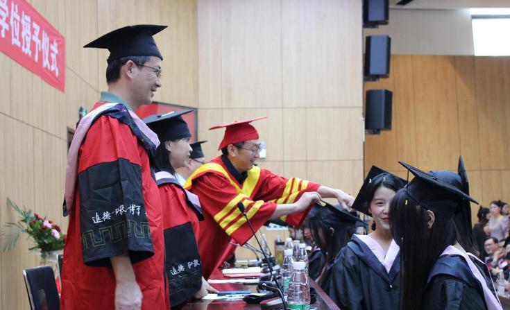 谆谆教诲刻心间,赤子之心映容颜。雄壮激昂的国歌声起,全体人员垂手肃立,齐唱国歌,在庄重热烈的气氛中,典礼正式开始。学院党委书记张红亚宣读省级、校级品学兼优毕业生表彰决定,对受表彰的学生表示祝贺,鼓励同学们在未来的旅途中继续锤炼自身本领,彰显青春力量。张亚新和学院领导为毕业生颁发学位证书并拨穗扶正流苏,共同庆祝毕业生们圆满完成学业,并为毕业生们送上祝福,毕业生们满怀着激动的心情,满怀着对未来的期望,踏上了为梦想而奋斗的新征途。