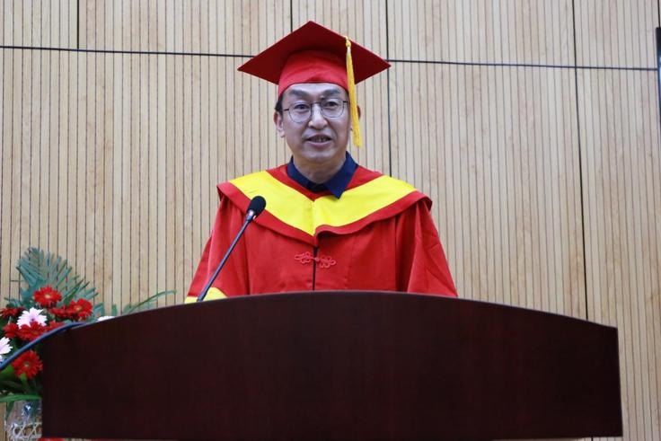 张亚新副校长向圆满完成学业的同学们表达了热烈的祝贺,鼓励同学们要在新的人生阶段中继续保持勤学善思的状态、保持踔厉奋发的姿态、坚持兢兢业业的常态、保持乐观向上的心态;要超越自我,用拼搏奋斗唱响青春最美好的旋律,站在“两个一百年”的历史交汇点,满怀豪情一起向未来,信心百倍地向着全面建成社会主义现代化强国的宏伟目标迈进;祝愿同学们在奋斗的道路上有挚友相随,在旅途的彼方归来仍是少年,在人生的考场上不负母校期许,为自己交上一份满意的答卷。