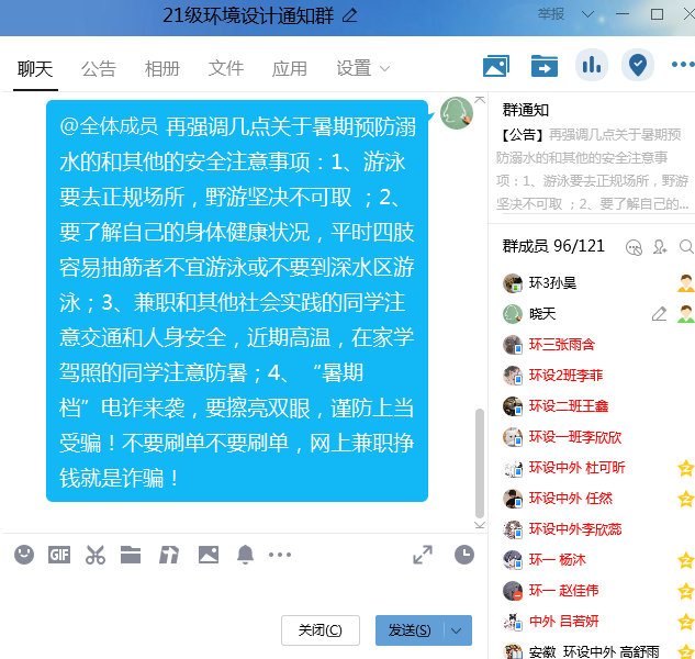 此次安全教育班会的召开,增强了同学们的假期安全意识,明确假期依旧要加强自我防范,增强安全观念,度过一个充实而有意义的假期。最后,就近期高温天气提醒同学们注意防暑降温、饮食安全和规律作息,并落实好常态化疫情防控要求,以饱满的精神状态迎接新学期。(作者:陈晓天;审稿:张红亚)