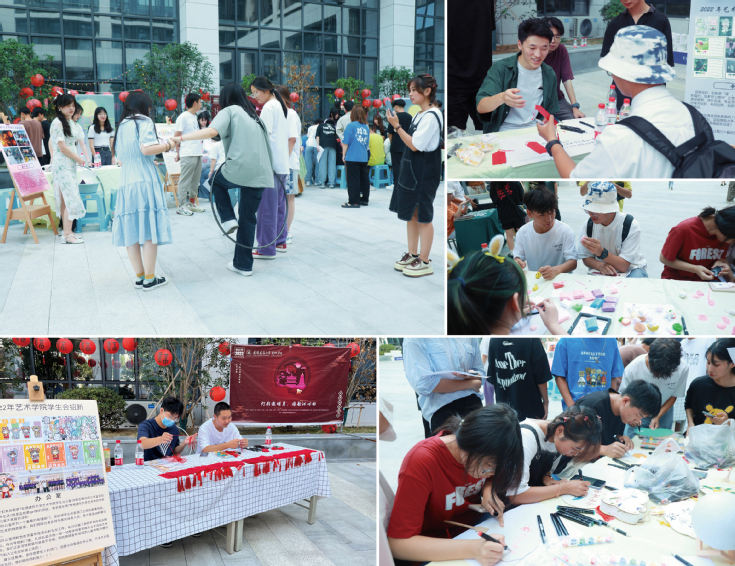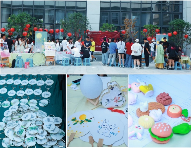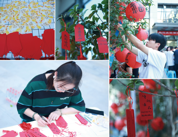 花灯邀明月,欢乐度中秋。不论是祈愿还是祝福,不论是团扇书画还是文虎灯谜,每个展台都以其别出心裁的创意吸引了同学们的关注。大家带着几分好奇和期待积极参与互动,写下美好祈愿挂在树梢,摘下枝头文虎猜解谜题,妙手提笔轻绘团扇书画,灵心巧手制作各式各样的中秋主题工艺品,各展诗书才华巧夺飞花令。