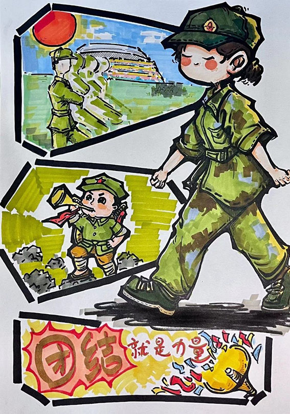 本次主题绘画活动加深了同学们对军训的重要意义的认识与体会,升华了同学们的爱国情怀与集体荣誉感,并结合自己的专业能力展示了艺术学院学生笃学奋进、勇于创新的青春风采。(作者:孙长玥 许多;审稿:张红亚)