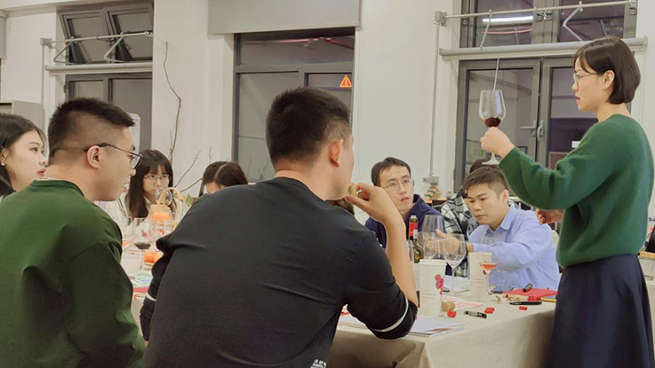会上,王兰兰讲师对于葡萄酒的起源、酿酒葡萄的种类、各类型酒的口感以及中国葡萄酒产区等方面进行了详细讲解。与此同时,在她的引导下,参与人员先后品尝了起泡酒、干白葡萄酒、干红葡萄酒等多类酒种,深入了解各类葡萄酒在色泽、气味、口感等方面所具有的独特属性,并以看、闻、尝、品四步骤依次展开讨论。现场还设定了问答有奖环节,气氛活跃、轻松而又舒畅。