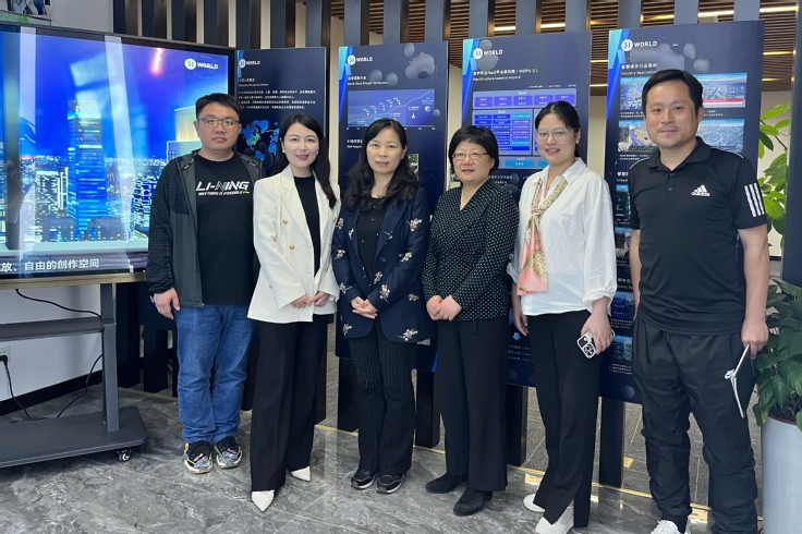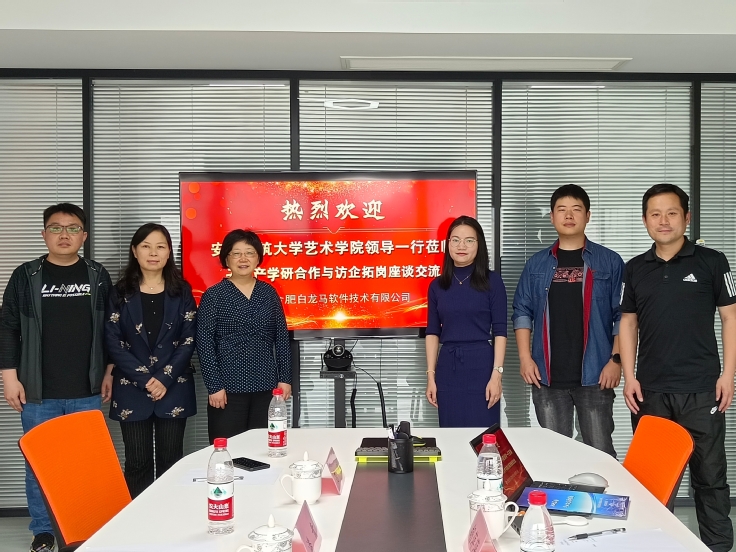 本网讯 为了进一步拓宽我校动画、视觉传达设计、公共艺术专业毕业生的就业渠道,5月30日,艺术学院党委副书记(主持工作)潘青、副院长(主持工作)邢瑜、动画系主任范骏、副主任张抗抗一行走访临安徽白龙马软件技术有限公司和北京五一视界数字孪生科技股份有限公司(51WORLD)安徽分公司,开展访企拓岗工作。