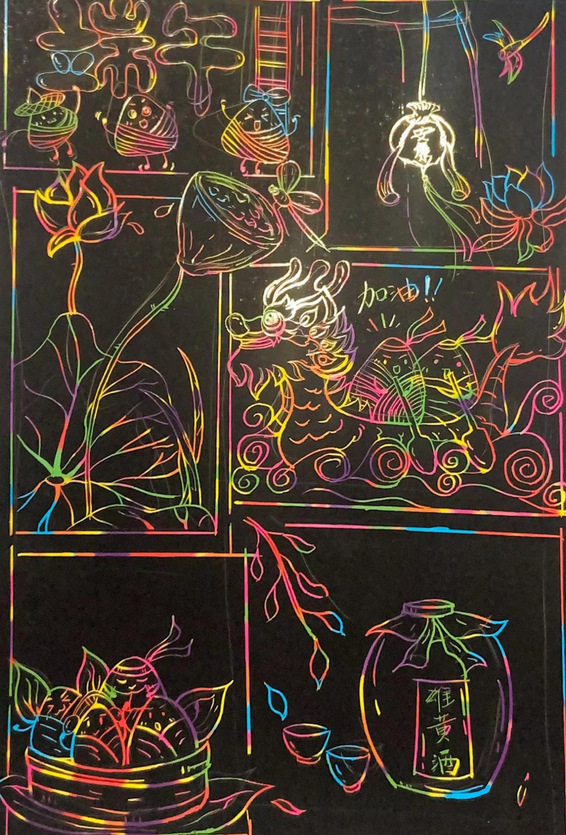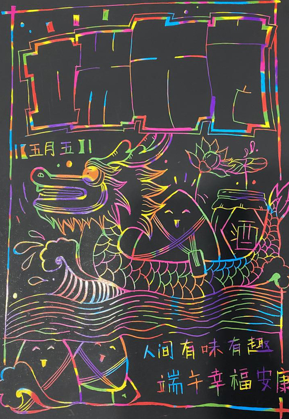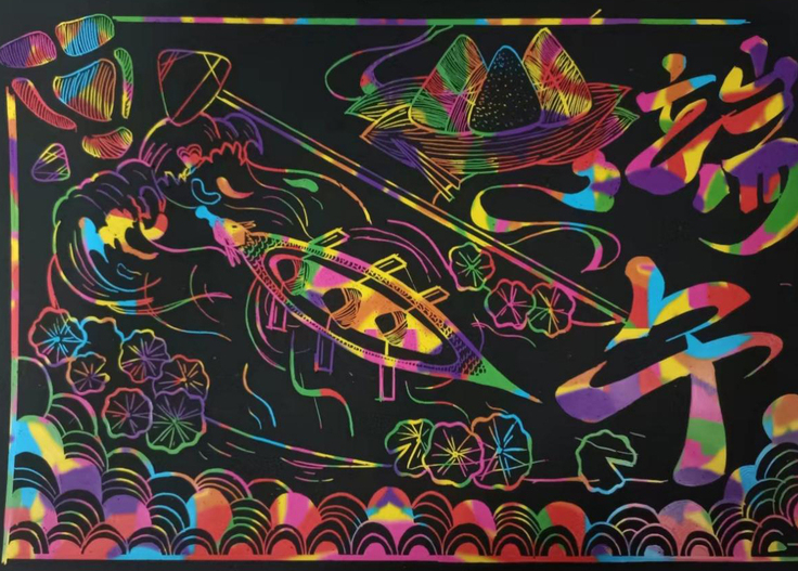 艺术学院“流光溢彩迎端午”主题刮画活动通过创新形式引导同学们将自身对传统节日的奇思妙想表达出来,让今年端午节的记忆尤为深刻,展现了青年大学生的青春力量。(作者:孙长玥 闫雨欣 胡书豪;审稿:潘青)