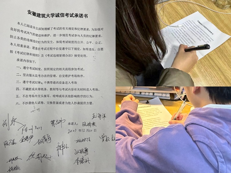 同学们纷纷在《诚信考试承诺书》上郑重签下自己的姓名,承诺坚守诚信品德,从每一场考试和身边小事做起,争做诚信青年。