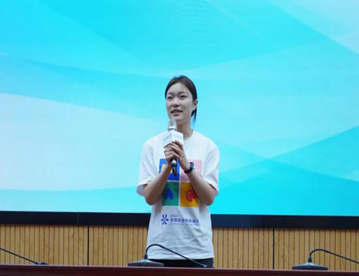 第二位发布人李广悦则与大家分享了以一市镇箬岙酒为毕业设计主题的设计实践故事。她以宁海特有的白枇杷为素材,把箬岙村的文化底蕴和自然风光融入到箬岙酒包装设计中。她讲述了自己设计中的故事和思考,也希望每一位箬岙酒用户能感受到她的用心和诚意。