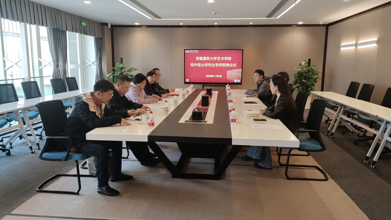 本网讯 11月6日上午,艺术学院研究生校外导师受聘仪式暨研究生联合培养交流座谈会在安徽省美术馆一号会议室举行,会议由艺术学院副院长(主持工作)邢瑜主持。艺术学院党委副书记(主持工作)潘青、副院长黄朝晖、科学技术处(产学研合作办公室)副处长洪涛共同为安徽省美术馆副馆长刘文杨、安徽省美术馆学术交流部主任张耕、安徽省书画院副院长陈明哲颁发了研究生校外导师聘书。
